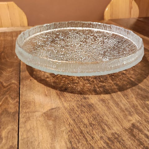 Iittala Ultima Thule kirkas iso tarjoiluvati 370 mm. Noin parikymmentä vuotta vanha. Ollut joskus jonkun aikaa senkillä koristeena mutta suurimman osan ajasta laatikossaan kaapissa. Laatikossa joitakin jälkiä. Nouto / lähetys ostajan lukuun.