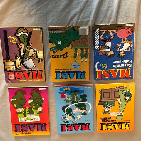 Masi-sarjakuva 57 hyväkuntoinen, vaikuttaa lukemattomalta jopa. Masi 2, Ohoh herra kersantti, ehjä, mutta etusivulla omistuskirjoitus ja joillakin sivuilla sormenjälkiä tai tahroja. Yhteishintaan 4 e.