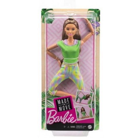 887961954951 Barbie-nukke® tietää, että paras tapa olla paras versio itsestäsi on pitää parempaa huolta itsestäsi, olit sitten liikkeessä tai paikallasi. Barbie® Made to Move ™ -nuket voivat suorittaa realistisia liikkeitä molempiin suuntiin, jonka lisäksi ne kykenevät liikkumaan ja ottamaan realistisia asentoja. Jokaisella nukella on 22 nivelä niskassa, ylävartalossa, kyynärpäissä, ranteissa, vartalossa, lonkissa, reisissä, polvissa ja nilkoissa, mikä tarjoaa uskomattoman liikkumavapauden.