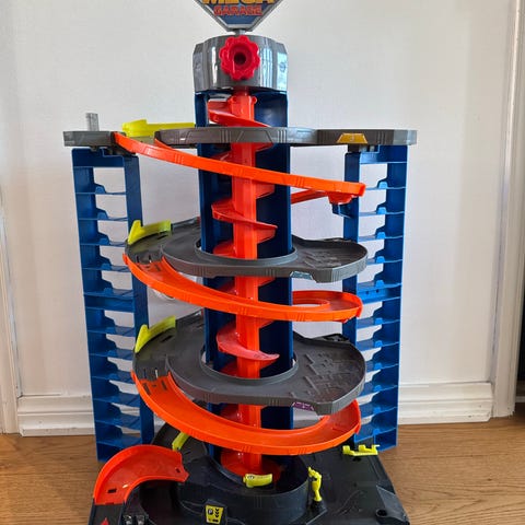 Hot Wheels mega garage autotalli, mekanismi toimintakunnossa
