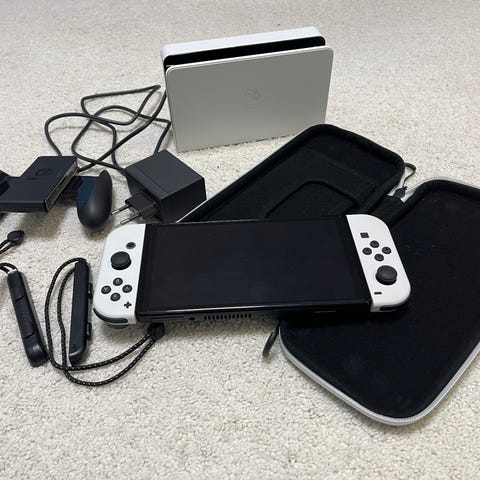 Noin 3 vuotta käytössä ollut Nintendo Switch Oled. Konsolin nättö on lähes naarmuton (muutama hyvin pieni naarmu näkyy oikeassa valossa). Mukana kaikki, mitä alkuperäisessä paketissa oli mukana, ja lisäksi konsolille kantokassi. Postitus ja nouto onnistuu.