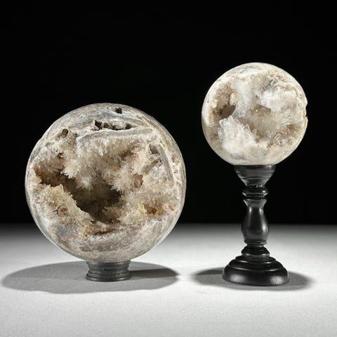 Upea kristallikvartsipallo räätälöidyillä jalustoilla.