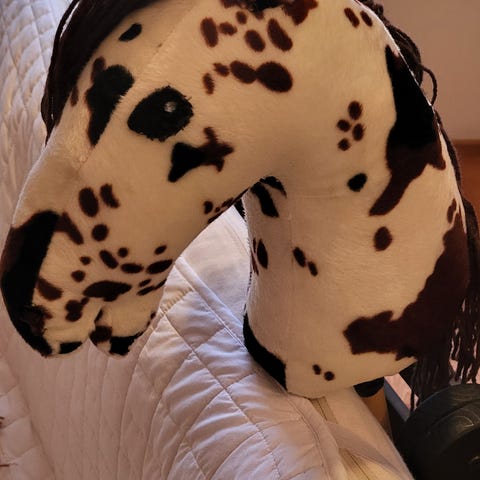 silmät ja sieraimet tekonahkaa ja ommeltu kiinni