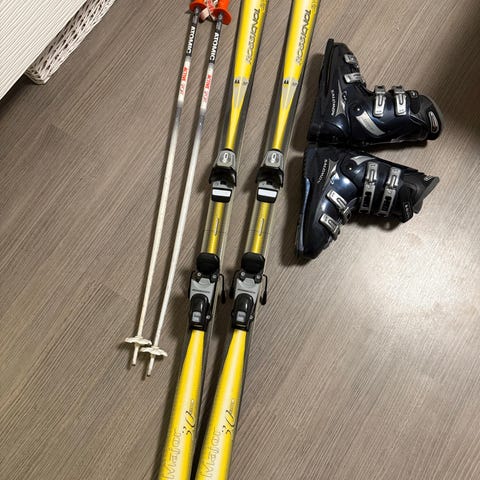 Myydään kuvan laskettelusetti. Sukset: Rossignol 174cm. Siteet: Rossignol. Sauvat: Rossignol 125cm. Monot: Lange 28,5cm. Kunto: käytetty hyvä.