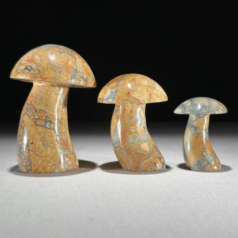Upea kolmen kappaleen setti sienimäistä keltaista maligano jasperia.