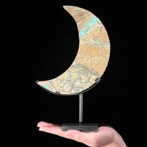 Upea pari vihreää smithsonitea, munanmuotoista ja palloja, omilla jalustoillaan.