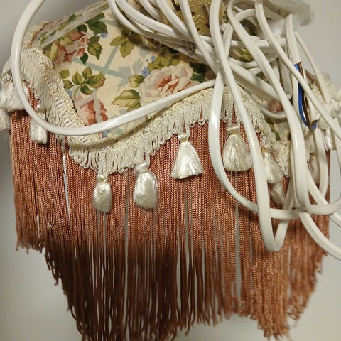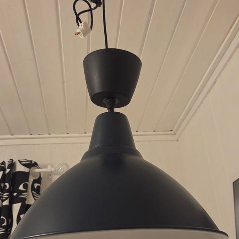 Kattovalaisin, joka on valkoinen vihreällä kuvioinnilla. Varjostin on muotoiltu ja roikkuu katosta joustavalla johdolla. Soveltuu sisäkäyttöön valaistusratkaisuksi.