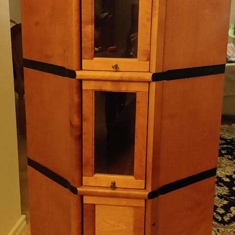 Kaksi keskiruskeaa, siistiä Boknäs-vitriiniä, joissa kummassakin seuraavat osat: