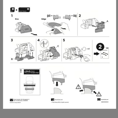 Tämä Kit on yhteensopiva ainoastaan Thule Evo Clamp (710500) ja Thule Edge Clamp (720500) jalkojen kanssa (Thulen uusimmat jalkamallit normaalikattoisiin ajoneuvoihin joissa ei ole kattokaiteita eikä kiinnityspisteitä).