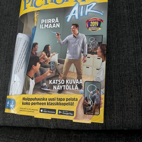 Myydään Pictionary Air lautapeli. Sisältää kortit ja kynän, jolla piirretään ilmaan. Kuvio ilmestyy pelaajien näytölle.