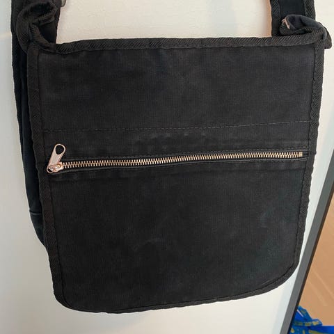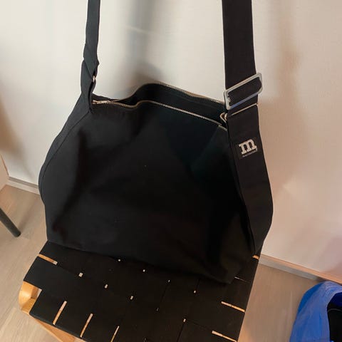 Marimekko kangas olkalaukku unisex, musta väri. Laukku on valmistettu kestävästä kankaasta ja siinä on säädettävä olkahihna. Laukussa on vetoketjullinen pääosasto ja useita taskuja tavaroiden järjestelyyn.