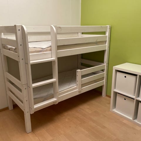 Käytetty kerrossänky. Muutamia kolhuja, eli ei ihan uudenveroinen. Mukaan saa kaksi patjaa, jotka ovat siistissä käytetyssä kunnossa.