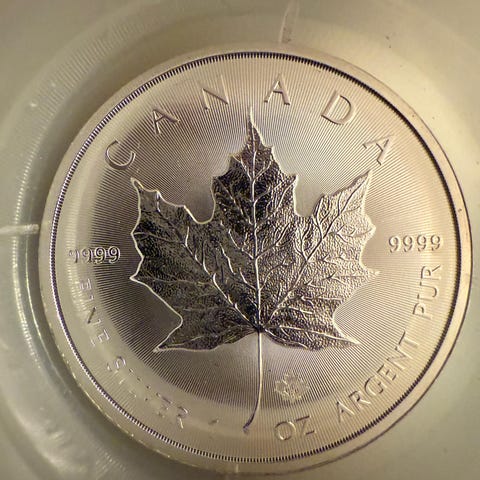 Myydään 5kpl 1 unssin Maple Leaf -kolikkoa .999hopeaa.