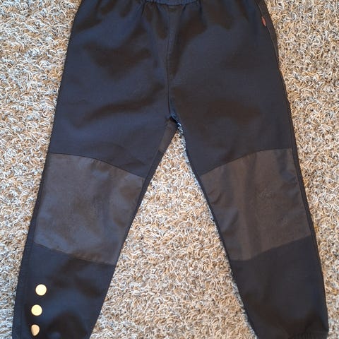 Housuissa jo selvästi enemmän käytönjälkeä, polvi paikattu ja pinnassa pientä naarmuja jne. Meillä menneet hyvin vielä kuivan kelin housuna (ja välillä olleet käytössä vähän kostealla säälläkin).