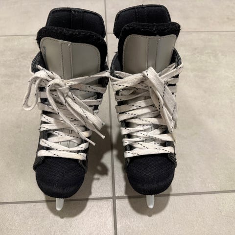 Bauer lasten jääkiekkoluistimet, koko 31. Luistimissa on nauhakiinnitys ja terät ovat ruostumatonta terästä. Paljon luisteltu, ehyet. Kärjissä näkyy käytönjälkeä. Terät hyvät. Ehkä teroitusta jo vaatii.