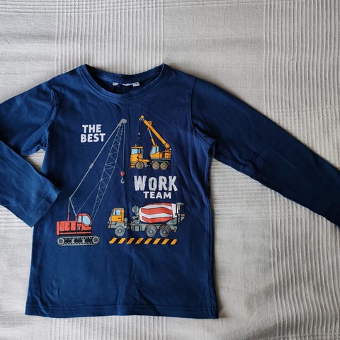 Pitkähihainen paita koko 110/116cm, muuten ehjä ja siisti mutta kainalosaumassa kuvan mukainen mini reikä.
