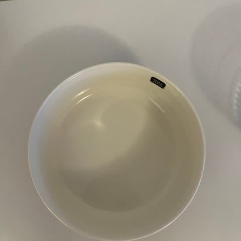 Erittäin vähän käytetty. Ihan pientä jälkeä näkyy kuitenkin kulhon reunassa ja muutama pieni naarmu pohjassa (yritetty saada näkyviin myyntikuviin).