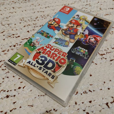 Nintendo Switch Super Mario 3D AllStars peli sisältää kolme klassista Super Mario -peliä. Tämä kokoelma tarjoaa kolmiulotteisen pelattavuuden ja on tarkoitettu Nintendo Switch -pelikonsolille. Toimiva.