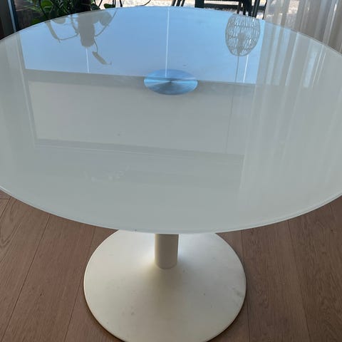 Myydään laadukas ja ajattoman tyylikäs BoConceptin pyöreä ruokapöytä lasikannella.