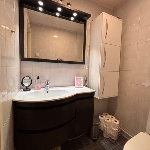 Yläkaapin koko L 39,5cm, K 70cm, S 18cm. Alakaapiston L 142cm, K (jalkojen kanssa ja tason kanssa) 84cm, S 33cm. Altaan koko L 60cm, S 50cm. Myös hana ja bidee kuuluvat pakettiin. Peilin saa myös halutessaan mukaan. Sen koko on L 90cm, K 60cm. TARJOA!