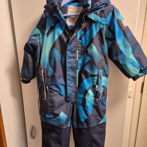 Yleisilmeeltään siisti talvihaalari, reiluhko koko. Polvet selkeän kuluneet/ohentuneet jo, pepussa vähäistä kulumaa.