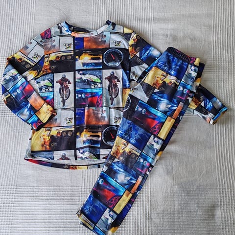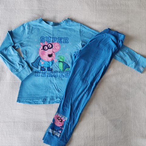 Kaksiosainen sininen Peuhu yöpuku kokoa 110cm. Muuten ehjä ja siisti, mutta paidassa muutama pienen pieni reikä, jotka näkyy kuvassa