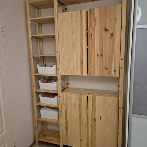 2kpl Ikean Ivar kaappeja. Toinen petsattu ja toinen ilman käsittelyä. Siistejä.