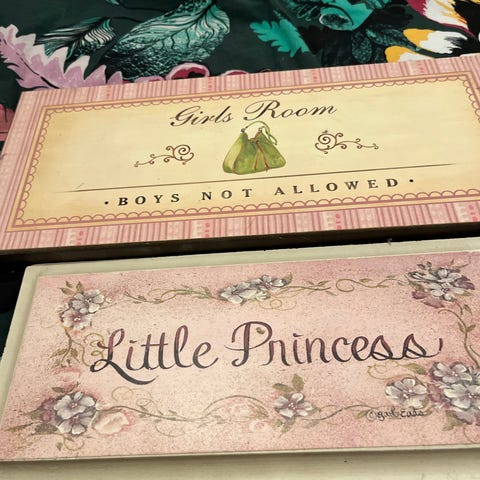 Koristekyltti, korkeus 16 cm. Ripustuskoukku irronnut, muilta osin täysin kunnossa.
