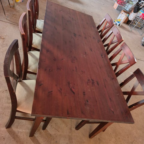 Pohjanmaan Kalusteen laadukas Kartano-sarjan ruokailuryhmä. Käytön jälkiä jonkinverran, koitin niistä kuvia napsia.