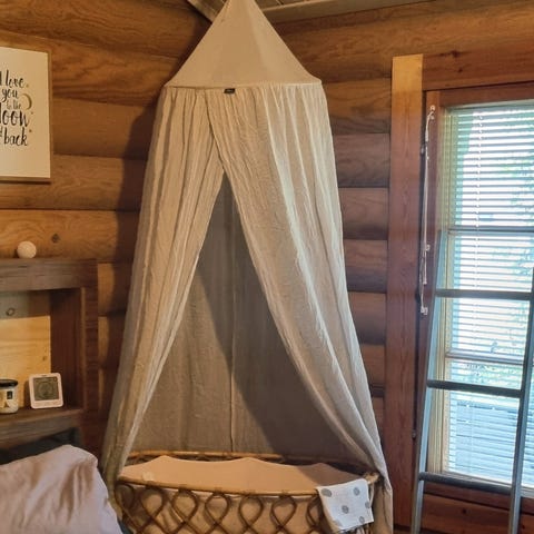 Siistikuntoinen rottinkinen vauvan ensisänky