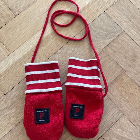 Tummansiniset Polarn o Pyret windfleecehanskat koko 6-12 kuukautta. Mielestäni pienempää kokoa, ei ainakaan meidän isokätiselle tässä iässä enää mahtuneet. Lisäksi H&M toppakäsineet kokoa 62/68.