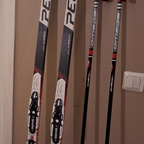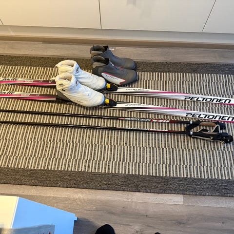 Hyväkuntoiset pitopohjasukset, vain pari kertaa käytetty. Mukana myös Rex-merkkiset sauvat.