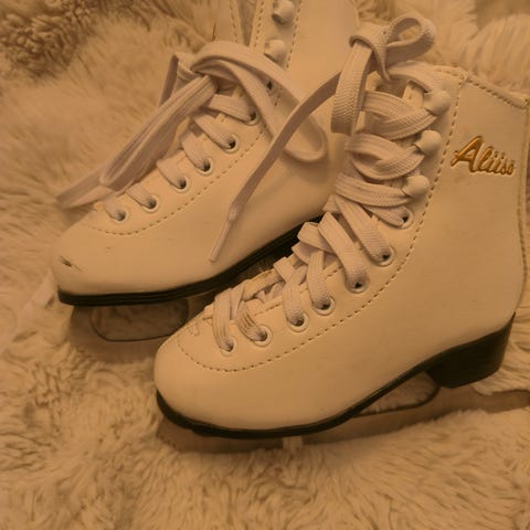 Olleet 4-5-vuotiaalla tytöllä käytössä. Hyvä kunto edelleen, mutta käytön jälkiä näkyy nahkapinnassa. Terät kunnossa.