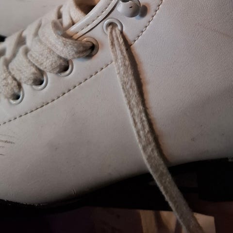 Stadiumista aikanaan ostetut koon 32 luistimet. Käytetyt, mutta edelleen hyvät terät luisteluun.