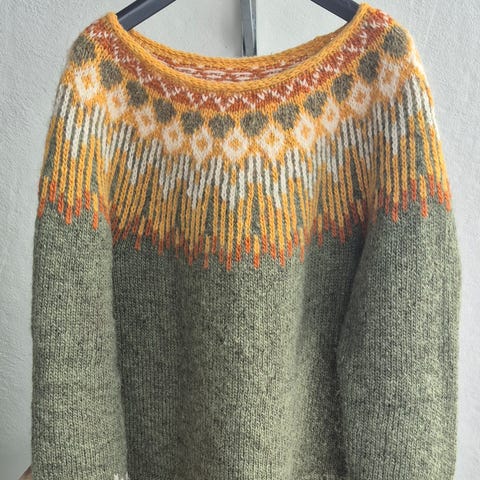 Käsinkudottu Islantilaisesta Lettlopi 100 % villalangasta, koko XL.