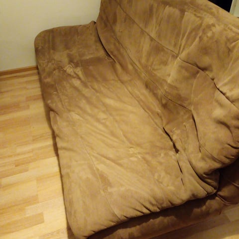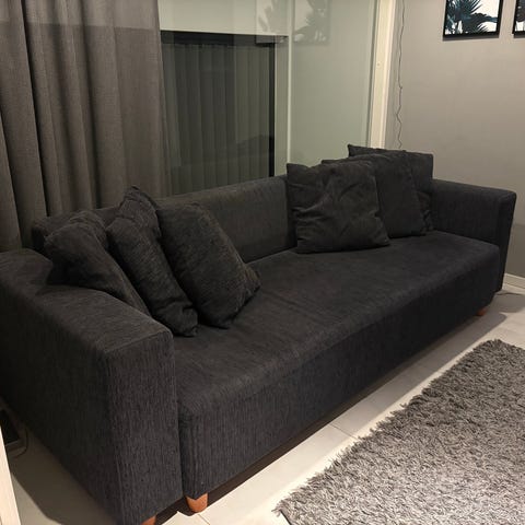 Annetaan tummanharmaa vuodesohva. Tarvittaessa kuljetus onnistuu.