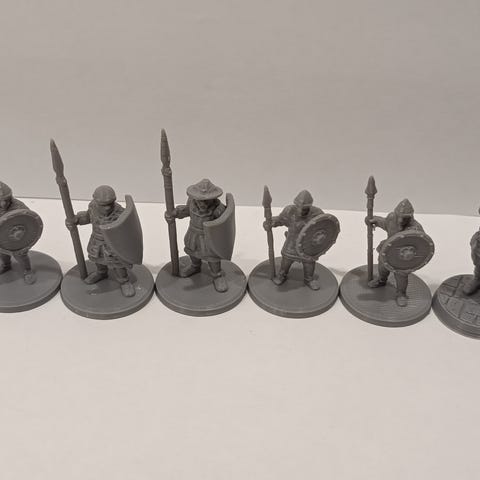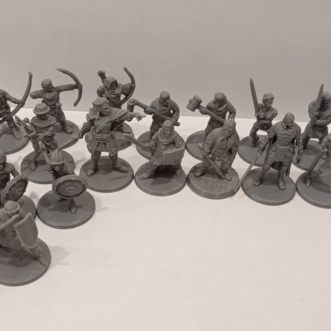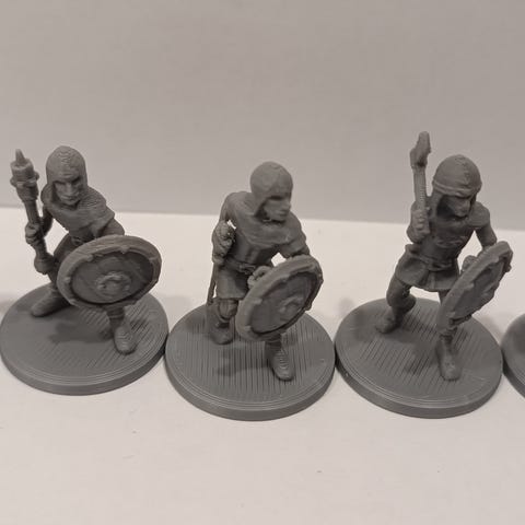 9 metallista miniatyyriä. Noin 2,5-3 cm korkeita. Kolme kutakin rotua.
