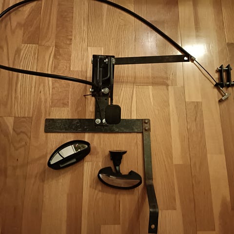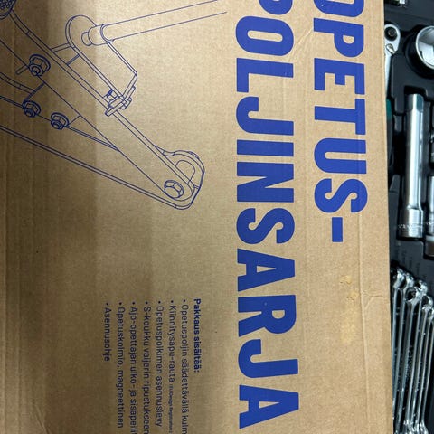 Opetuspaketti (poljin, lisäpeili ja varoituskolmio). Käytetty vain hetken opetuksen keskeytyksen vuoksi.