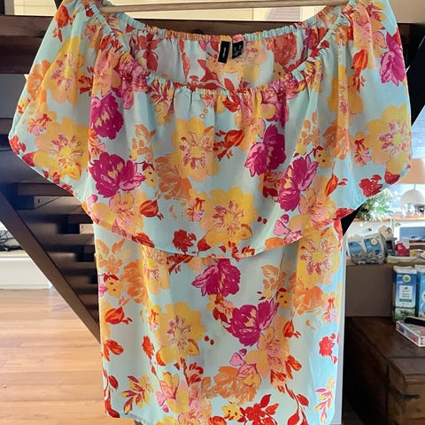 Vero Moda Kirjava paita polyesteriä, naisten koko L. Pitkähihainen paita, jossa monivärinen kukkakuosi ja rypytetyt hihat. Siisti käytetty.