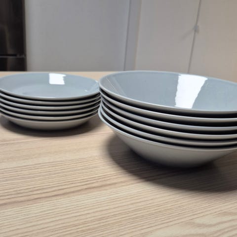 Yhdessä isossa lautasessa pieni lohkema, siitä kuva