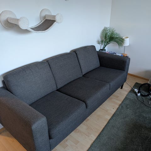 Myydään siisti sohva, jonka voi levittää vuodesohvaksi.