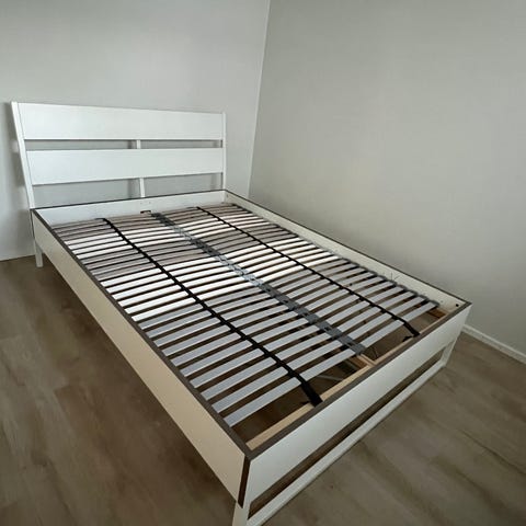 Sängynrunko IKEA, hyvällä sälepohjalla, valkoinen 140x200