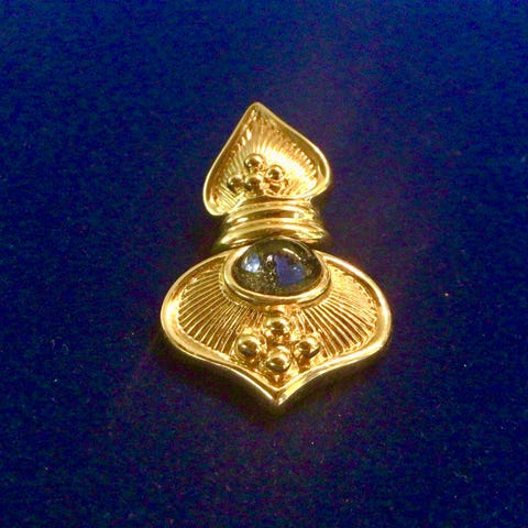 Kaunis Cabouchonin riipus. Kiven korkeus 2 cm, koko korun korkeus 3,3 cm.