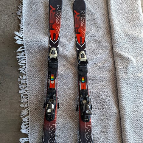 Laskettelusukset siteineen. Näissä pyöristykset myös takana joten takaperin laskutkin onnistuu. Pituus noin 95cm