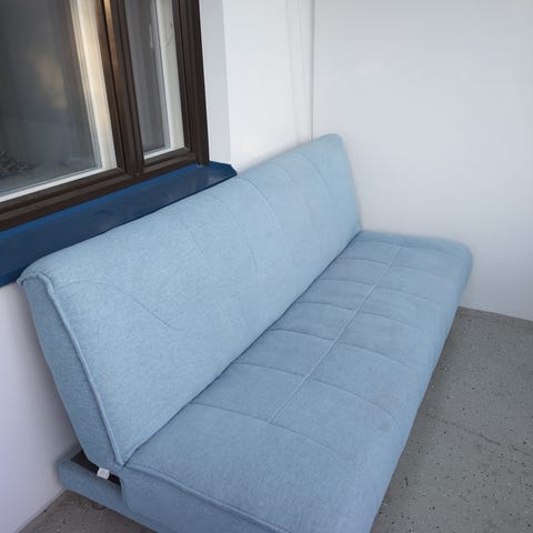 Jos käyttää vuodesohvana, niin suosittelen laittamaan petauspatjan päälle jotta on mukavampi nukkua. Jos haluat, voit saada sohvan lisäksi likaisen petauspatjan, jota olemme käyttäneet tämän sohvan kanssa nukkumiseen.