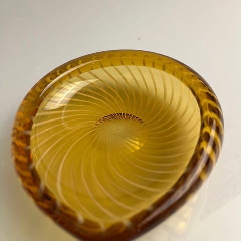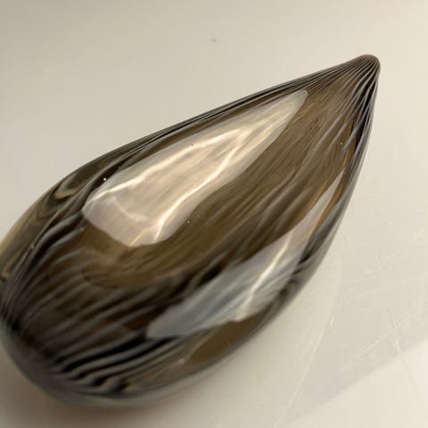 Riihimäen lasi, Nanny Stil, tohveli taidelasiesine, signeerattu, ehjä, siirtelyjälkeä ja käyttökulumaa. Isompi koko, pituus n. 16 cm, lev. n. 13 cm
