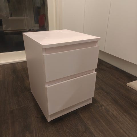 Ikean muistaakseni Kullen sarjaa oleva lipasto kolmella laatikolla. Ollut alunperin mustanruskea, mutta maalattu tikkurilan sävyllä Tutu. Joitain jälkiä on näkyvissä.