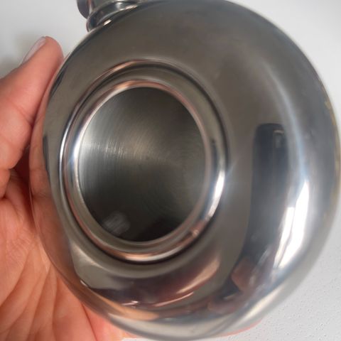 Bensakanisterin näköinen taskumatti. Tilavuus 18 cl. Ruostumatonta terästä.