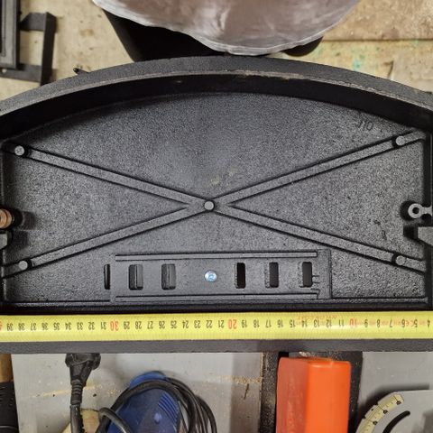 Myydään käytetty musta UPO leivinuunin valurautainen luukku. Kehyksen ulkomitat: leveys 50 cm ja korkeus 26 cm. Luukun leveys 44,5 cm ja korkeus 20 cm.