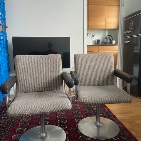 Nämä upeat kunnostetut 30/40-luvun nojatuolit etsivät uutta kotia. Kunto molemmissa hyvä. Kangas ehjä ja siisti. Ei hajuja. Rungot ja jouset kunnossa. Myydään parina.